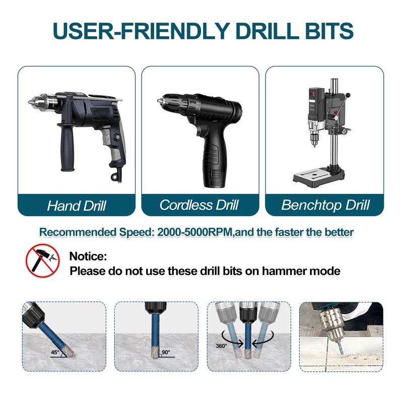 - 【Why choose us】Fast and Smooth drilling, Long life time and Less Chipping.Wax inside for cooling, Dry drilling without water