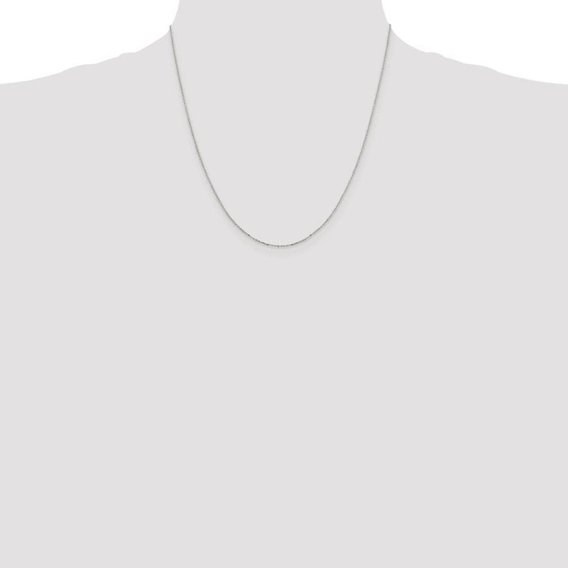 - PRODUCT DETAILS -:Finish:Polished | Length of Item:20 in | Plating:Rhodium | Chain Length:20 in | Chain Type:Cable | Chain Width:1 mm | Clasp /Connector:Spring Ring | Feature:Solid | Material: Primary:Sterling Silver | Width of Item:1 mm | Jewelry Type:Necklaces | Necklace Type:Chain Styles | Texture:Diamond-cut | Material: Primary - Color:White | Plating Color:Silver Tone | Plating: Chain:Rhodium