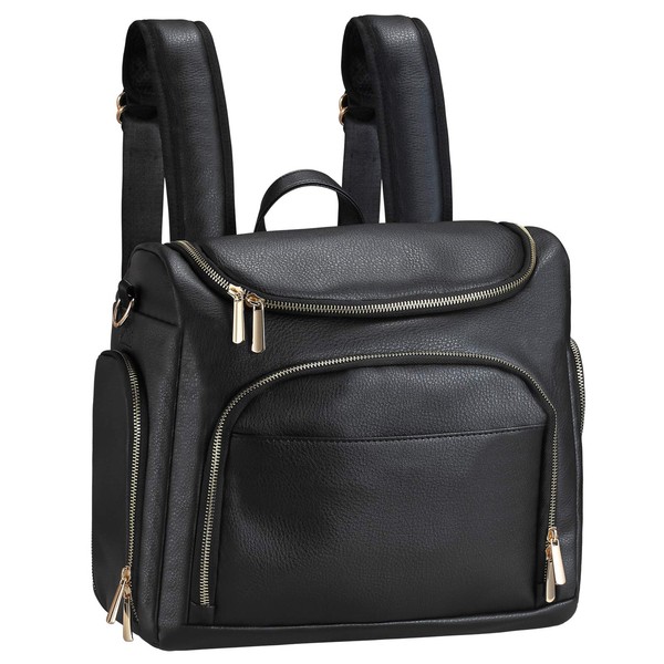 Diaper Bag Backpack, 5-in-1 Beaulyn Leather Travel Back Pack Large Capacity Organizer (Black)
