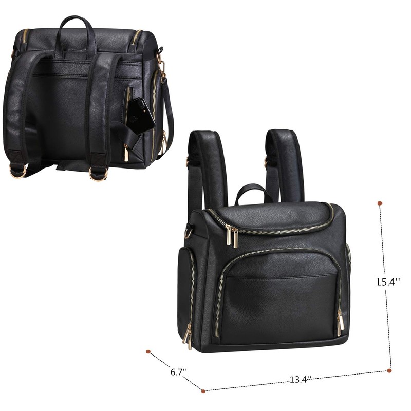 • DIMENSION: Diaper Bag: 15.4*6.7Inch*13.4 (L x W x H) Weight:2.8lb; Adjustable Backpack Strap:12.2~30inch, Adjustable Shoulder Strap:24.6~49.2inch, Stroller strap :10.2inch; changing pad :(23L x 12W inch)