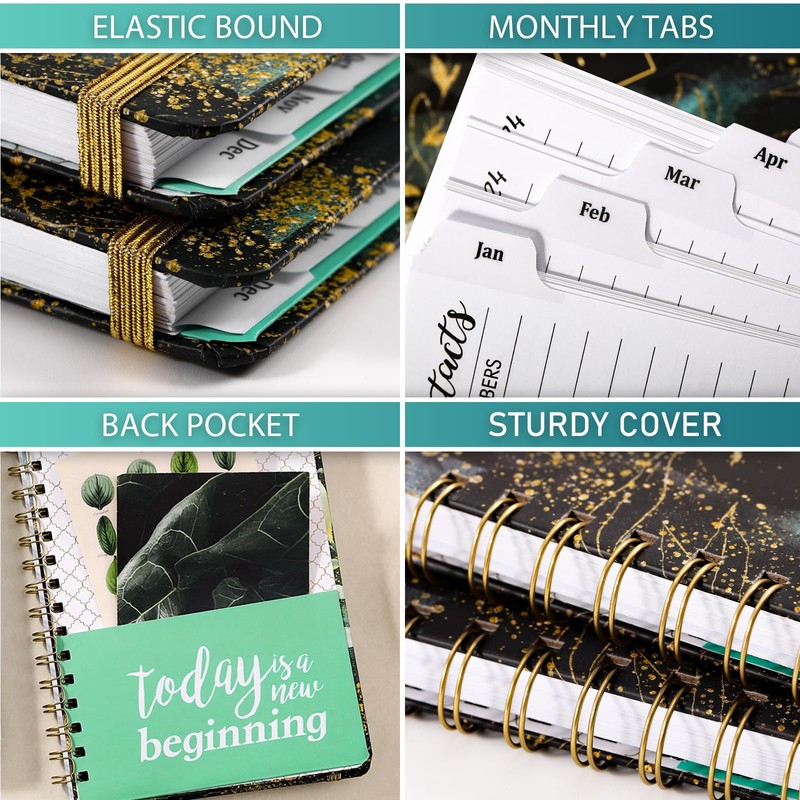 - 🌿 FUNCTIONAL DETAILS - Metal lay-flat twin-wire binding allows to open one page + 12 monthly tabs for quick checking + Quotes on the back inside pocket which can hold some cards + Elastic closure band to keep diary 2025-2026 closed.