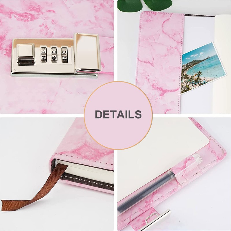 - 【WATERPROOF NOTEBOOK WITH A PEN】 The pen is our giveaway for you. The journal with lock for women also has a leather pen holder, which is able to hold the pen firmly. You can record your life anytime, anywhere. And a ribbon bookmark allow you to find important information more quickly. The A5 marble notebooks for girls with dreamy PU leather cover is soft and waterproof which can win girl's heart. Locked journals is suitable as a nice gift for women and girls, students, family and kids.
