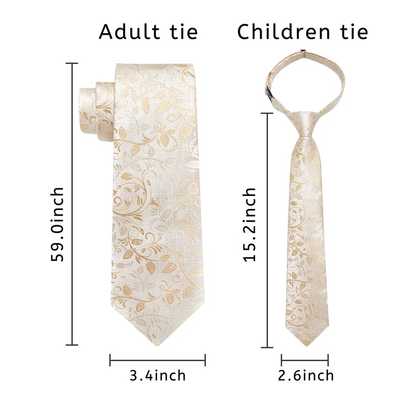 - 【MATERIAL and CRAFT】High-quality adult and children champagne tie sets are made from silk, providing a soft and delicate texture. 2000 stitches jacquard woven craft, high-density fabric makes the tie non-deformed and wrinkle free