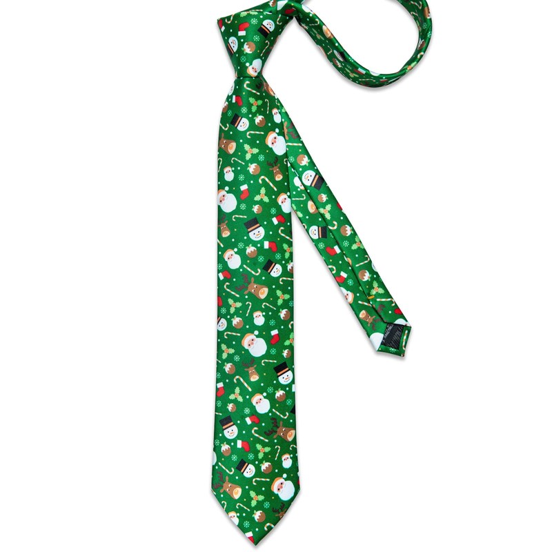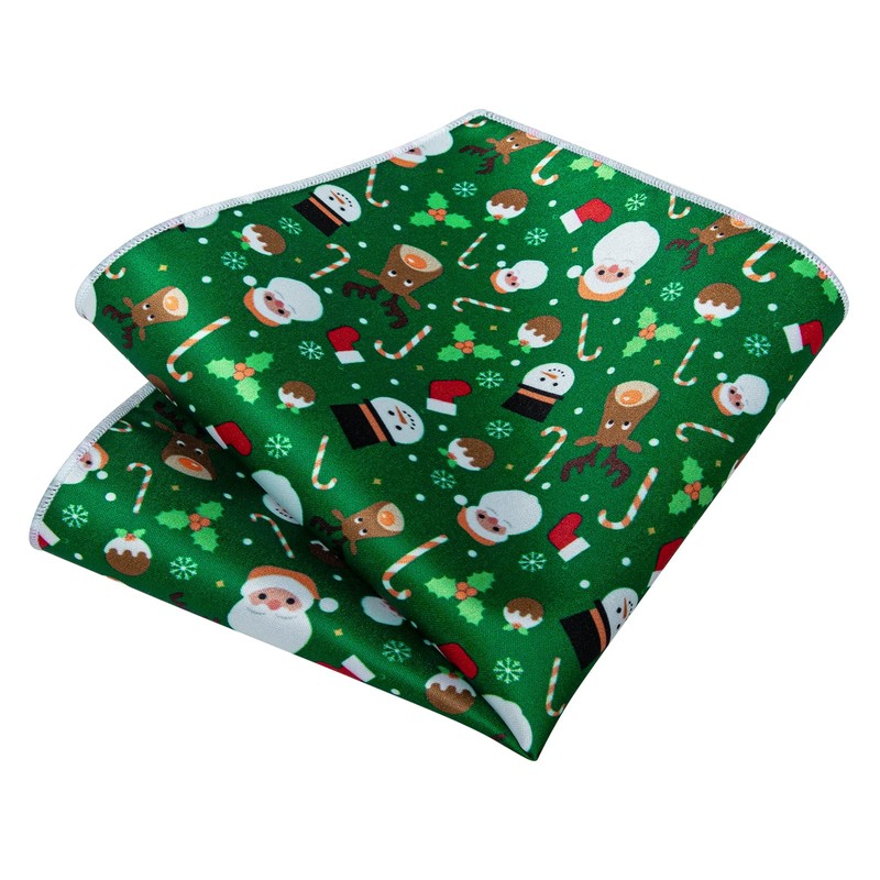 DiBanGu Green Christmas Ties for Men Silk Necktie and Pocket Square Set with Cufflinks Holiday Theme