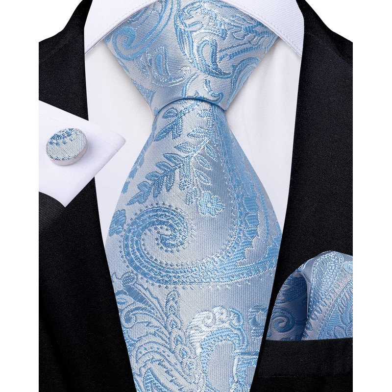 DiBanGu - Juego de gemelos de seda con cierre para hombre, diseño de cachemira, sólido/a cuadros, con lazo y bolsillo cuadrado ajustable, cachemira azul claro.