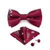 DiBanGu Men's Christmas Pre-Tied Bow Tie Silk Festival Bow Tie and Pocket Square Cufflink Set for Christmas Party Holiday, Red and silver