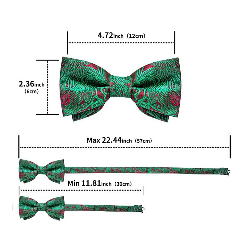 - Christmas bow tie set: silk Christmas pre-tied bowtie+woven pocket square+cufflinks+gift box. The unique pattern and elegant style of the bow tie make your Christmas full of romance. As a Christmas gift for family or friends, the Christmas bow tie is definitely a big surprise