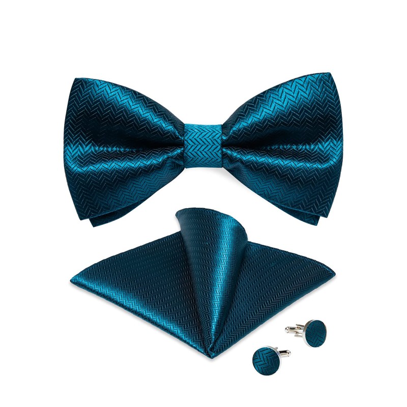 - Juego de regaloEl paquete incluye: 1 pajarita turquesa, 1 pañuelo de bolsillo, 2 gemelos, 1 caja de regalo. El versátil juego de corbatín para hombre es un excelente regalo para padre, esposo, amigo e hijo para el Día de San Valentín, Navidad, Halloween, Acción de Gracias, citas, aniversario..