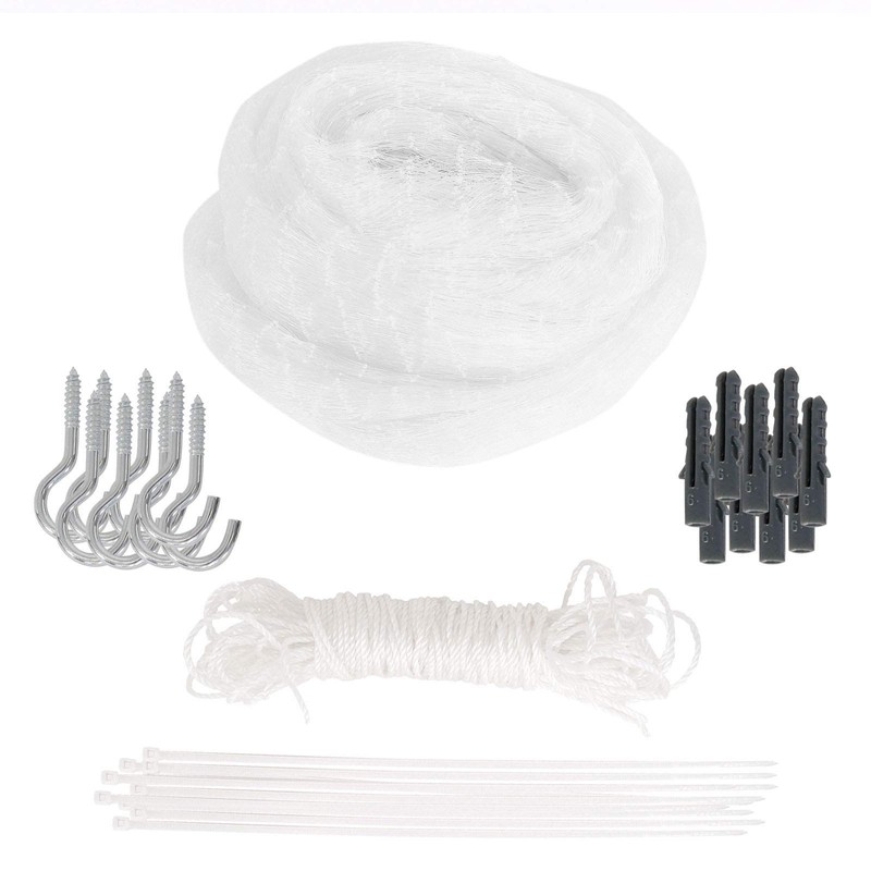 - Data and facts: The dibea balcony net for cats is available in the following sizes: 3 x 4 m, 3 x 8 m and 4 x 10 m with a mesh width of 2.5 x 2.5 cm. The mounting set includes dowels, screws and cable ties in addition to the mounting rope.