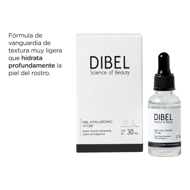 El DIBEL Suero Facial H&L Hyaluronic Vit.B5 es un producto de textura muy ligera diseñado para brindar una hidratación profunda y efectiva a la piel del rostro. Su fórmula innovadora combina ingredientes de alta calidad, incluyendo:
