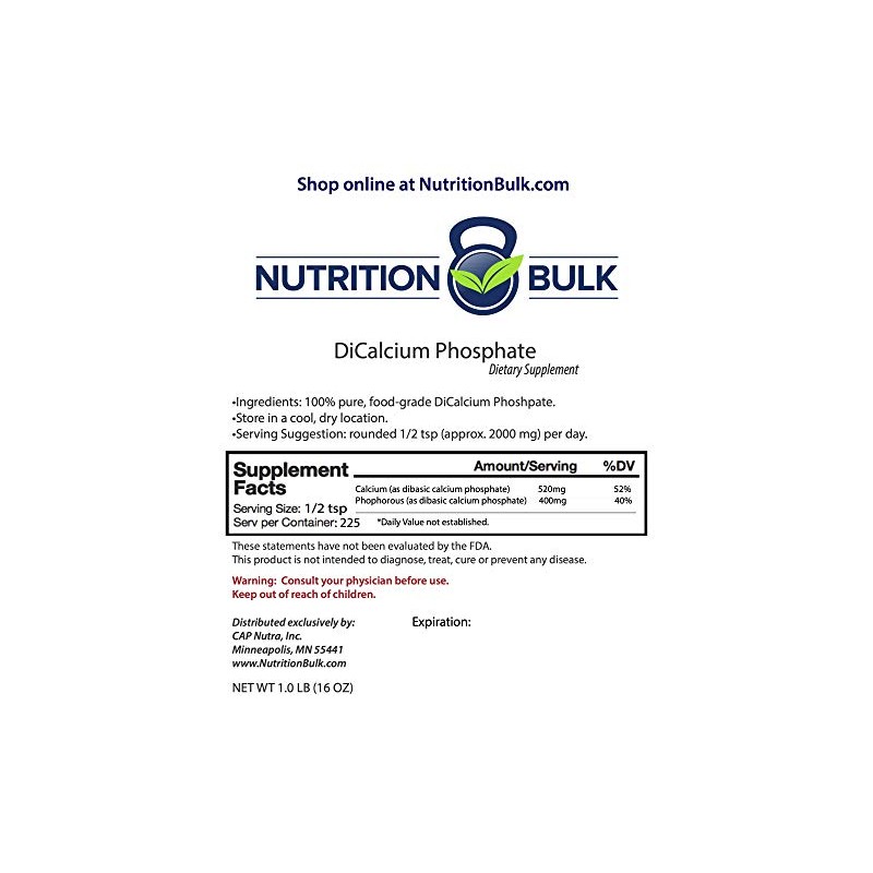 DiCalcium Phosphate (DCP) - Nutrition Bulk, Powder, Resealable Bag, Pure, No Fillers, Gluten Free, Non-GMO (16oz)