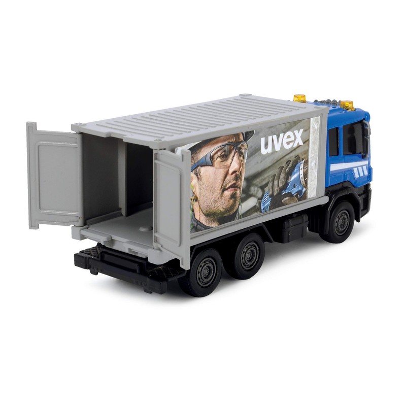- Waste vehicle, road construction vehicle or container truck have high-quality DieCast cabins and each movable and opening parts. The road construction truck also has the matching traffic signs for locking in the luggage.