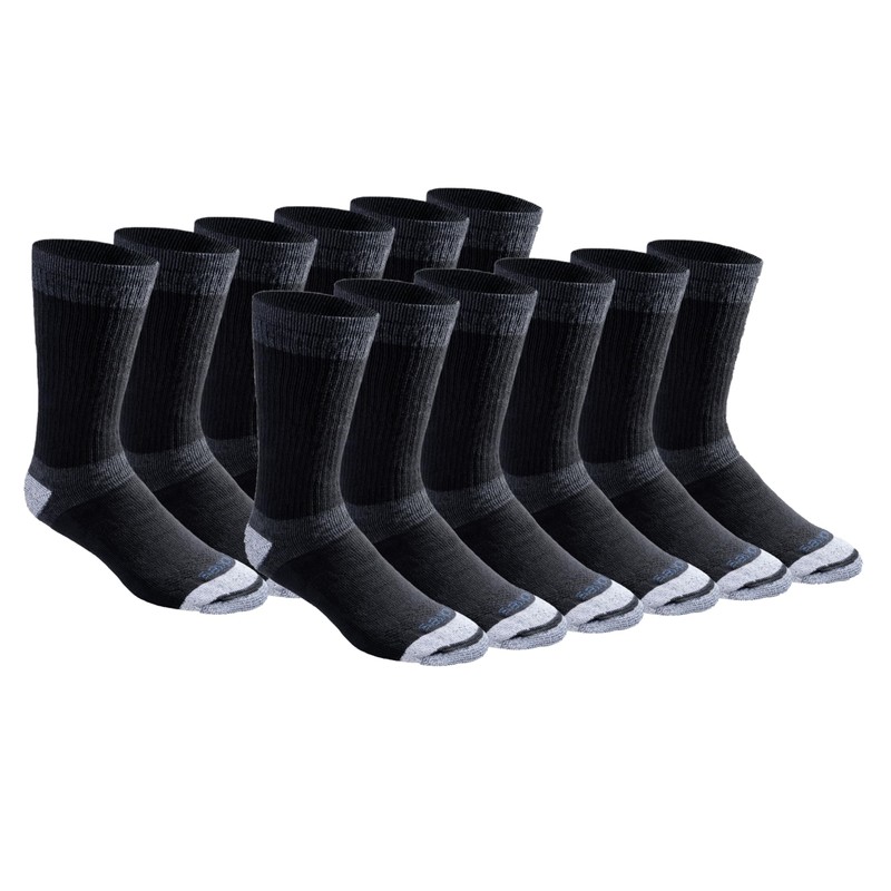 Dickies Men's Dri-Tech Moisture Control Max Full Cushion Crew Socks, Available in M-XL (6, Black (12 Pairs), X-Large