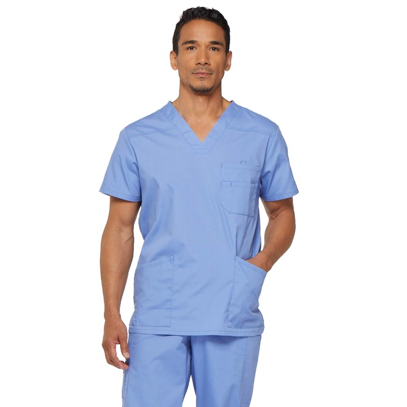 Dickies Men's Tall V-Neck Scrub Double Chest Pocket Top, Ceil Blue, 4X-Large Big