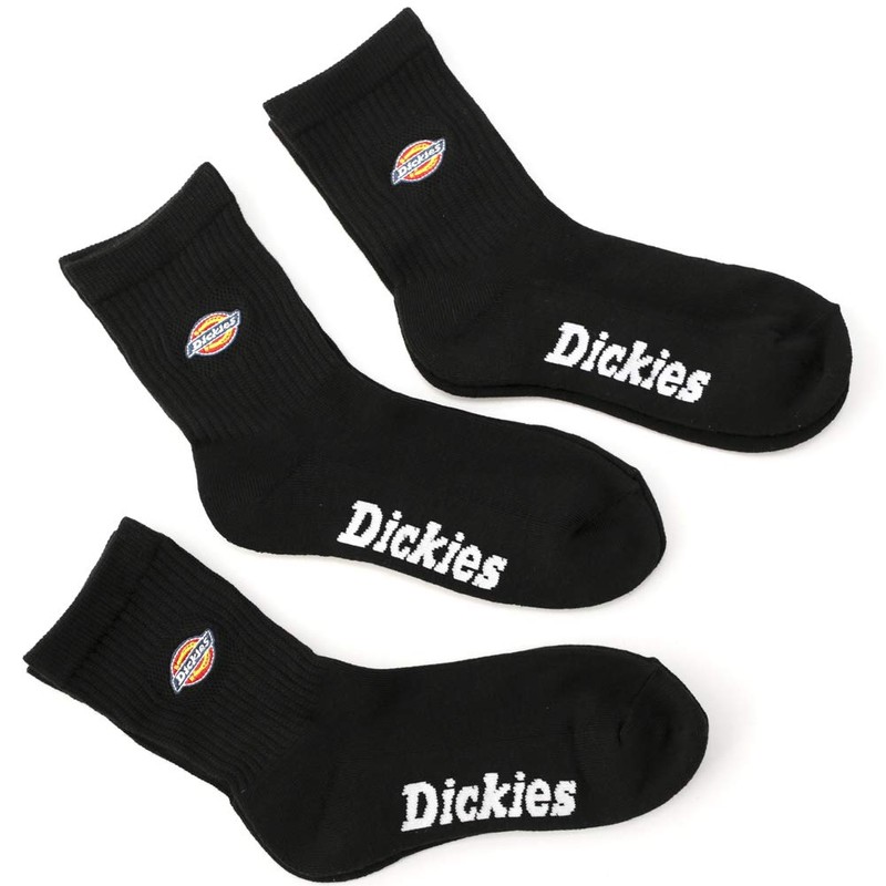 Dickies Socks - 3 Pack - 3 Pack - Embroidered Logo - Bottom Pile Crew Socks, White, Black, 3-Pack, Women's Black 3 Pair Set