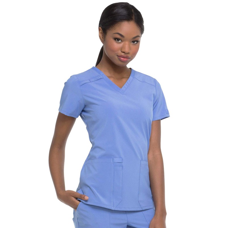 - CONTEMPORARY FIT - This V-neck top offers a contemporary fit, designed to flatter and provide comfort during long shifts. Its sleek design ensures a professional look without compromising on comfort, making it ideal for healthcare professionals.