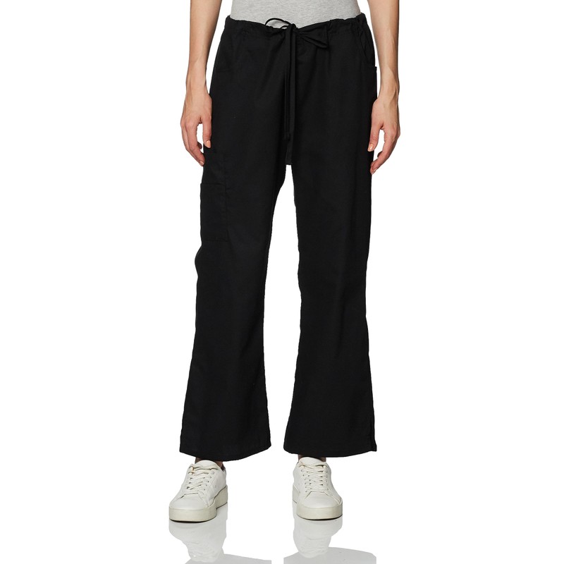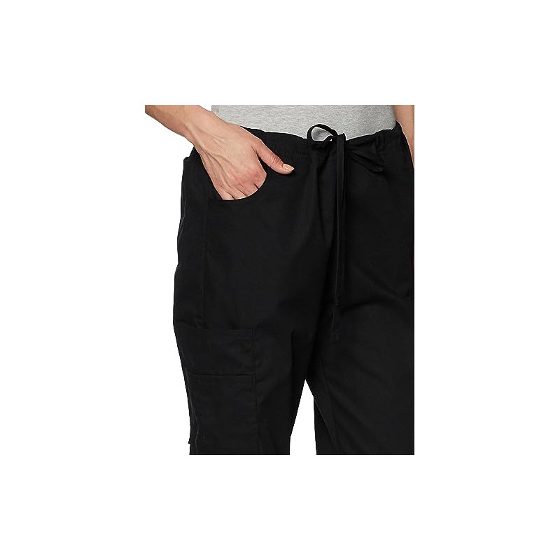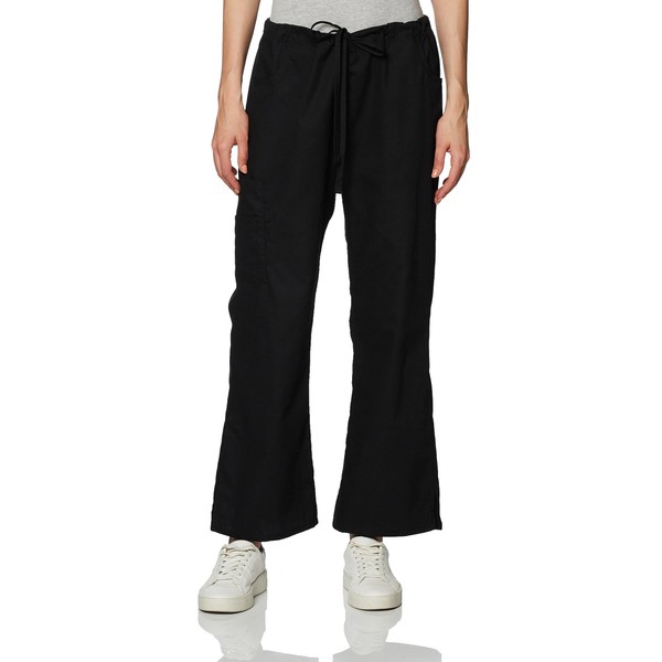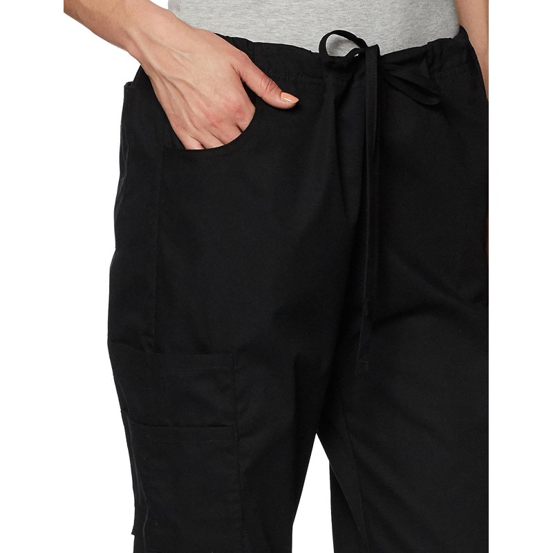 Dickies Women's Signature Mid Rise Drawstring Scrubs Cargo Pant, Black, Small Petite