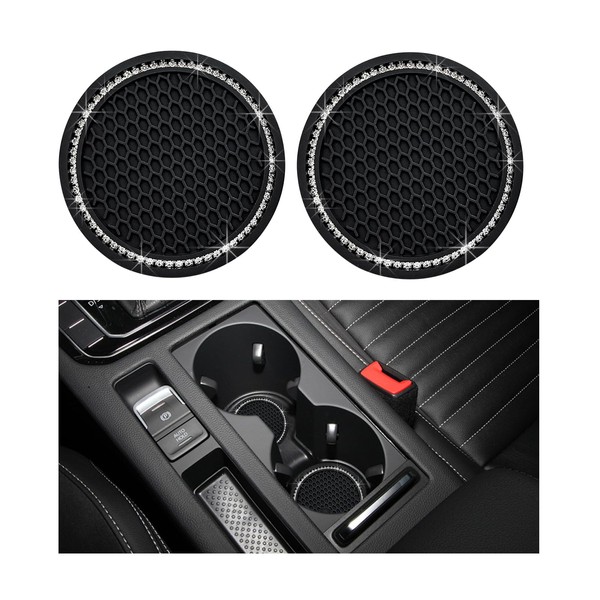 Dickno 2 PCS Bling Car Cup Coaster, 2.75 Inch Crystal Rhinestone Auto Cup Holder Insert Coaster, Anti-Slip Durable Car Drink Cup Mat, Universal Vehicle Interior Decor Accessories (Black & White)