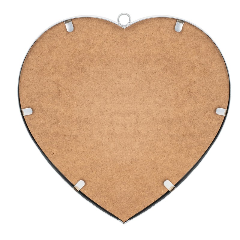 - Heart shaped mirror features sentiment reading "LIVE BY Faith"