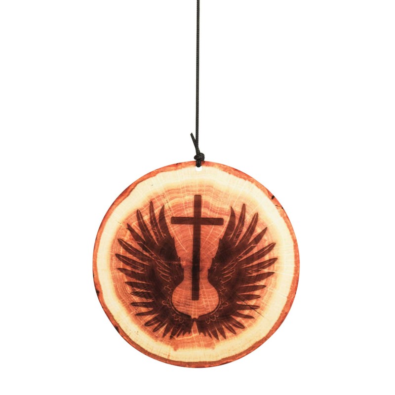 - Add some sentimental charm to your outdoor living space with the melodious wind chime; Features Eagle artwork and golden striker with wings and cross