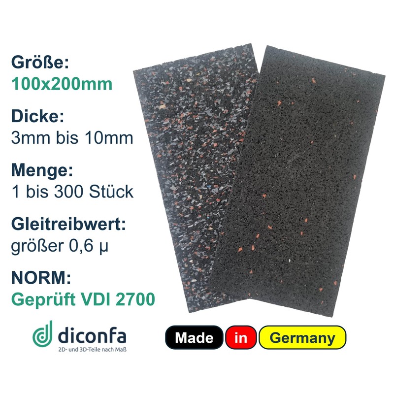 diconfa Load Securing Non-Slip Mat Rubber Pads VDI-2700 200 x 100 mm - 3 to 10 mm Thick - 1 to 300 Pieces - 6 mm, 1 Piece - Truck Trailer Loading Area Pallet Made of Rubber Granulate Building