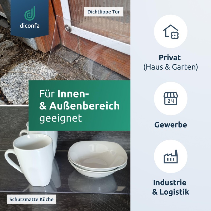 - Areas of use: front door and gate sealing, insect protection, indoor: underlay crafts, bathroom, kitchen, basement, workshop protective mat surfaces (wood, metal, glass, plastic, etc.)
