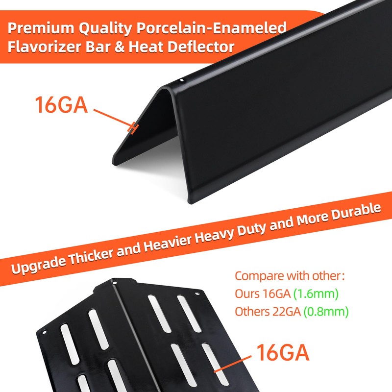 • 【High Quality & Safe Material】Dictirdy grill replacement parts are made of high-quality 100% food grade porcelain enameled steel and well-engineered, which is durable with uniform heating and high corrosion resistance. Upgrade to 16GA thicken and heavier porcelain steel, our weber genesis flavorizer bars are much more heavy duty to ensure long-lasting use and durable than others. The burner tubes are designed to carry a consistent gas flow throughout the weber grill for you to cook food evenly.