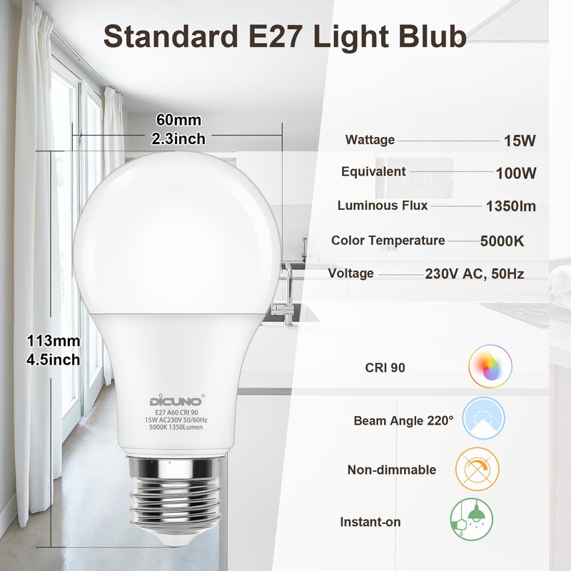 - ?G?ngigsten Bauform E27 Sockel ist bliche Fassung sowohl im Hausgebrauch als im Arbeitsbereich zu sehen. Das Schraubgewinde ist einfach in der Lampe eindrehen und die Bauform A60 ist auch klasische Gr??e als Ersatz gewesen. Sie verfgt ber alle Lampen mit standardisierten E27-Sockel. z.B. fr den Hausgebrauch ber Stehlampe, Tischlampe, H?ngelampe oder fr den Arbeitsbereich im Bro, Lernr?um, Supermarkt sowie Galerie.