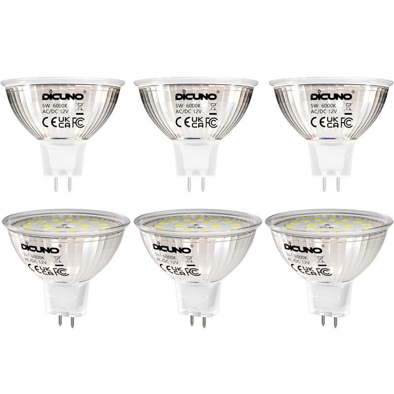 DiCUNO DiCUNO GU5.3 LED Lampen 5W, Ersetzt 50W Halogen Spot, Kaltwei? 6000K, MR16 Reflektor GU5.3 LED Birne 12V, 500lm, 120Abstrahlwinkel, AC/DC LED Leuchtmittel, nicht dimmbar, 6er Pack