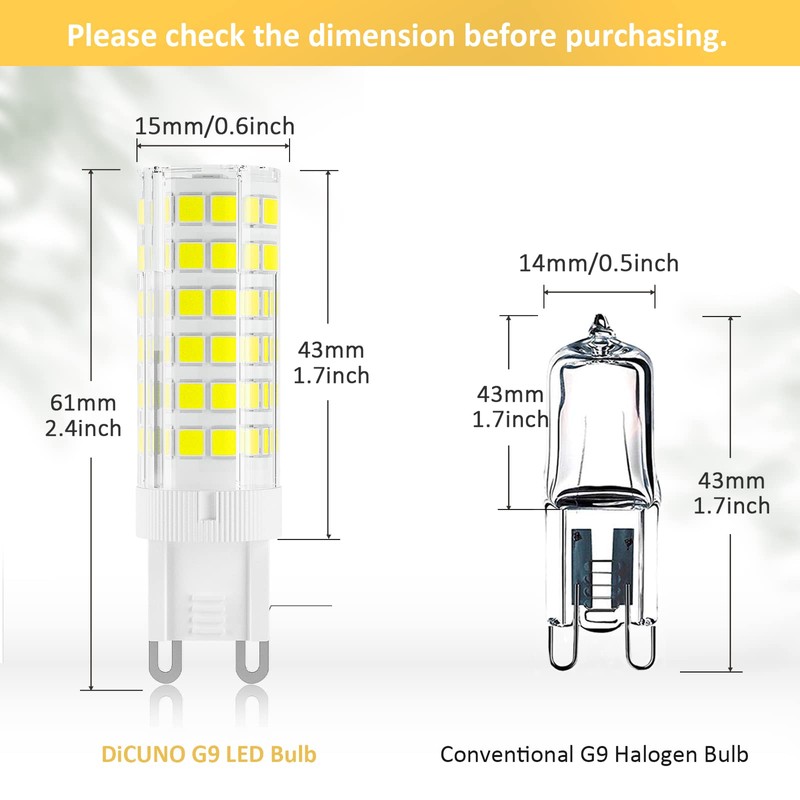 - ⭐【Purchase Worry-Free】: DiCUNO always stands behind our products; if you have any questions about the g9 led bulbs or other services, please feel free to contact us, and we will try our best to answer your question and solve your problem.