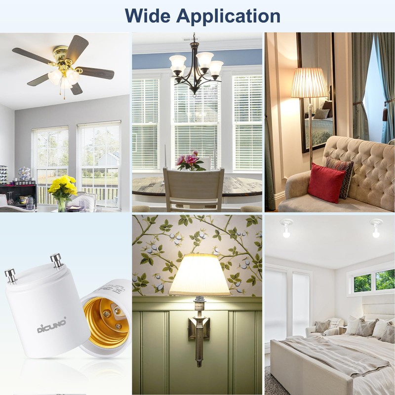 - Applications: Easy to screw this adapter into a GU24 base socket, then easy to screw a E26 medium base bulb into this adapter.