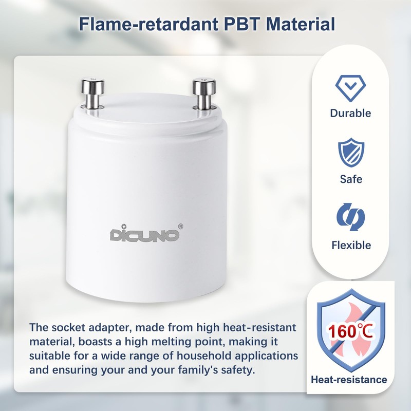 DiCUNO GU24 to E26 Adapter, 160℃ Heat Resistant, Maximum Wattage 200W, GU24 Pin Base to E26 Standard Medium Base Socket Converter, GU24 Adapter, 50-Pack