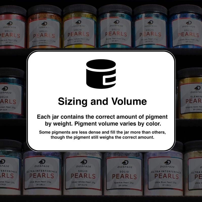 • Elevate your creations with our fine pearl pigment, featuring a 10-60 micron particle size for a smooth, luminous pearlescent effect. Achieve unmatched brilliance and elegance! Being automotive-grade, you can trust the quality and durability of this pigment, ensuring UV and solvent resistance for lasting results. Didspade is renowned for delivering the most amazing colors on the market, and this product is no exception.