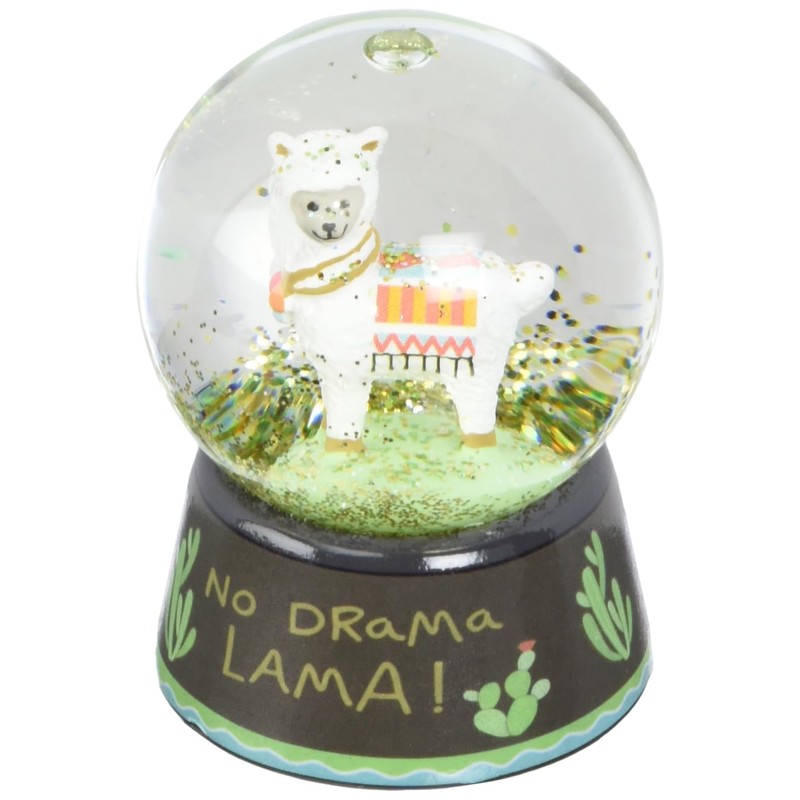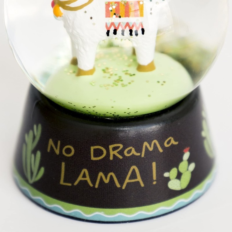 - SHAKING SNOW BALL: The romantic dream ball for shaking is made of glass and polyresin and is filled with refined glitter that creates a shimmering dream world when shaken. Height 6 cm, diameter 4 cm, llama motif on base and saying "No Drama Lama".