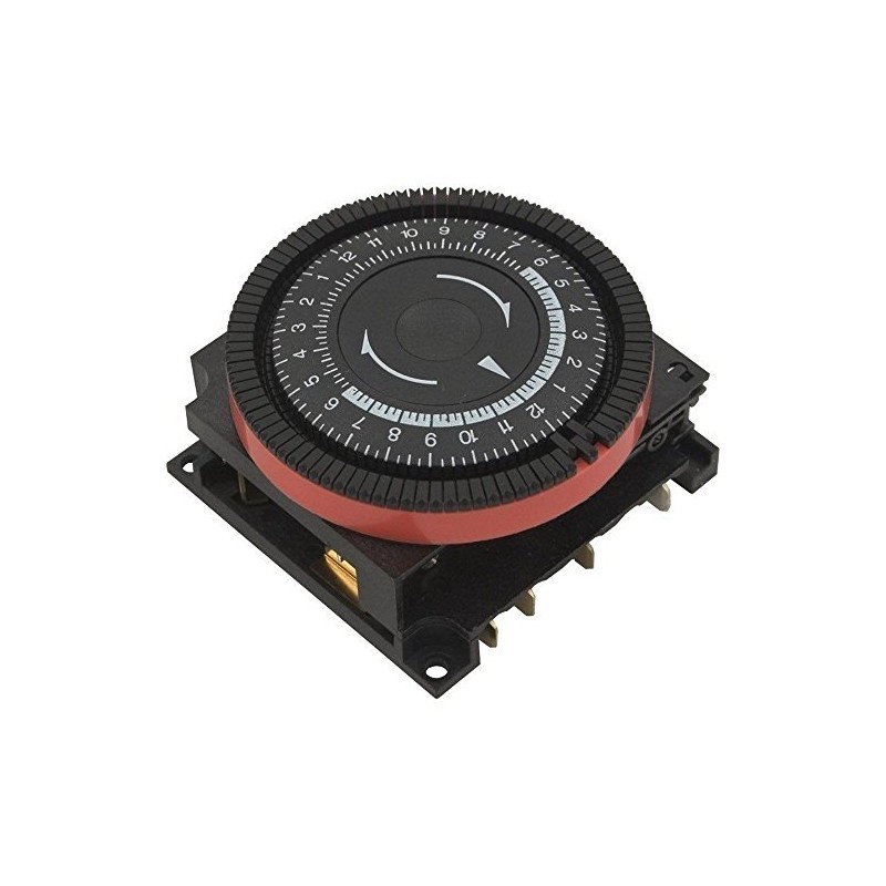 Diehl 24 hr spa time clock. Diehl 800 series electromechanical time clock TA4065 is a 240V, 15amp panel mount timer for bath, whirlpool, spa and hot tub controls (and other uses too!). 4 terminal tabs on the bottom on this SPST timer. Also available in 120V, see part number TA4071. Orange colored bezel behind timer dial.