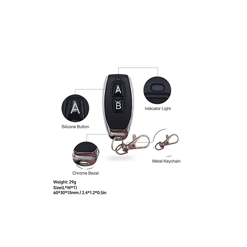 DieseRC 1527 Learning Code Wireless Remote Control Transmitter Keychain 433Mhz 2 Buttons, for use with DieseRC Receiver