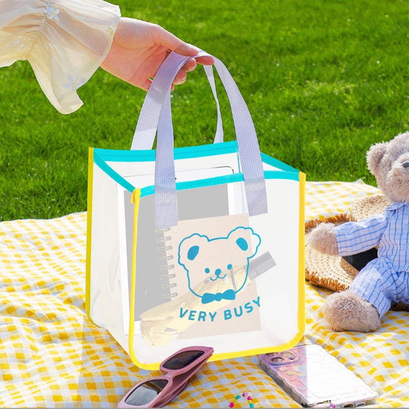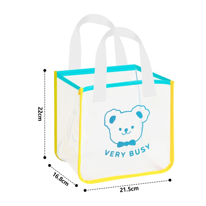 [DIFEIUKI] プールバッグ 半透明 メッシュの底 ビニールバッグ pvc スイミングバッグ かわいい くま柄 防水 大容量 手提げバッグ 化粧品 コスメ 水着収納 ビーチ/水泳/温泉/旅行/アウトドア お持ち運び便利 男女兼用 多用途 スパバッグ 23*22*17CM
