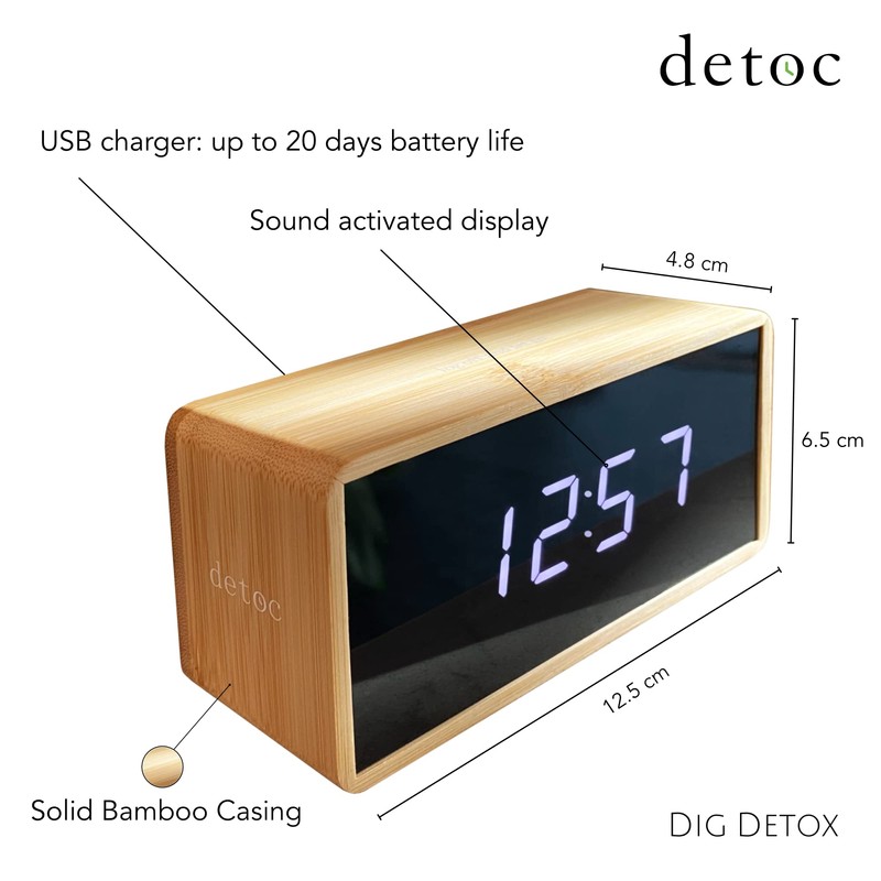 You can now say goodbye to your mobile phone's risky blue light exposure before your bedtime and avoid using it as an alarm clock for healthy sleep improvement. The Dig Detox Detoc Wooden Digital Clock pairs the latest technology with natural materials as a safer and healthier alternative to the modern lifestyle.