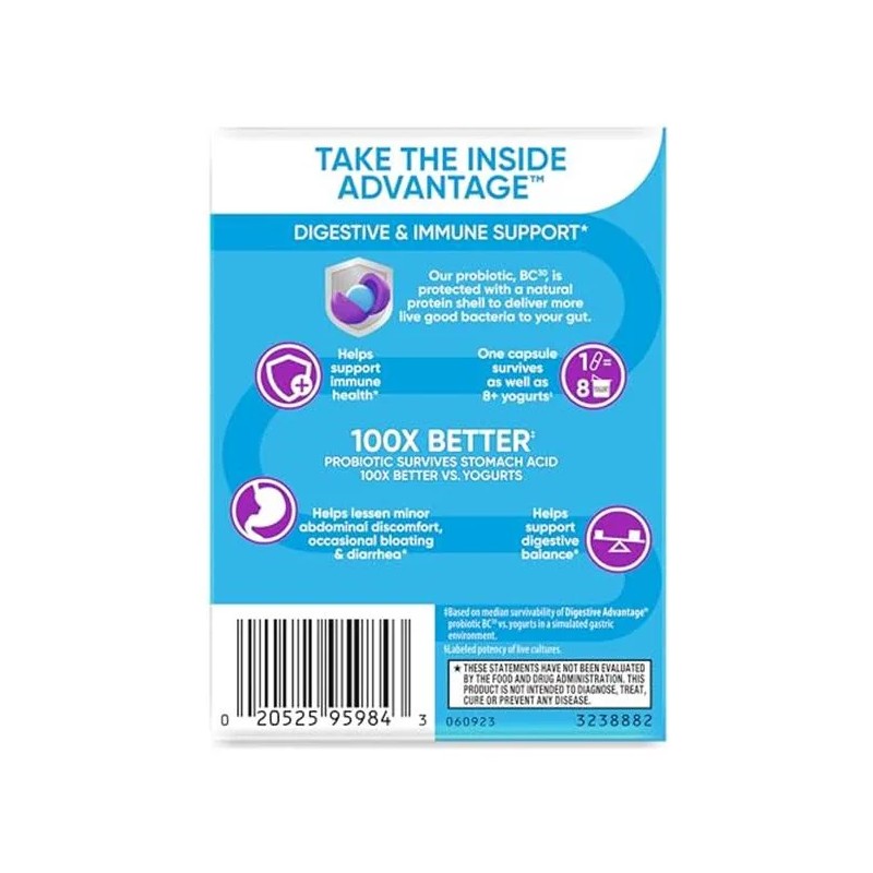 - INMUNIDAD: 70% del sistema inmune está en el tracto digestivo. Las bacterias buenas de Digestive Advantage apoyan las células inmunes intestinales.