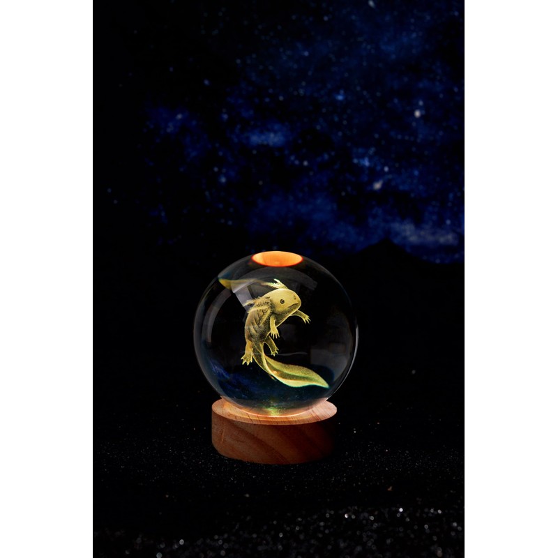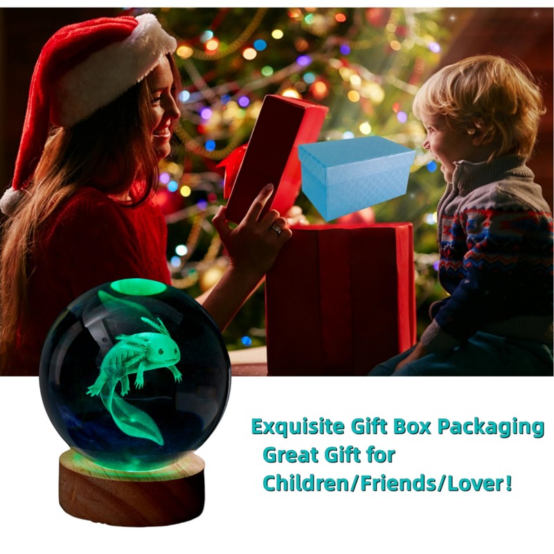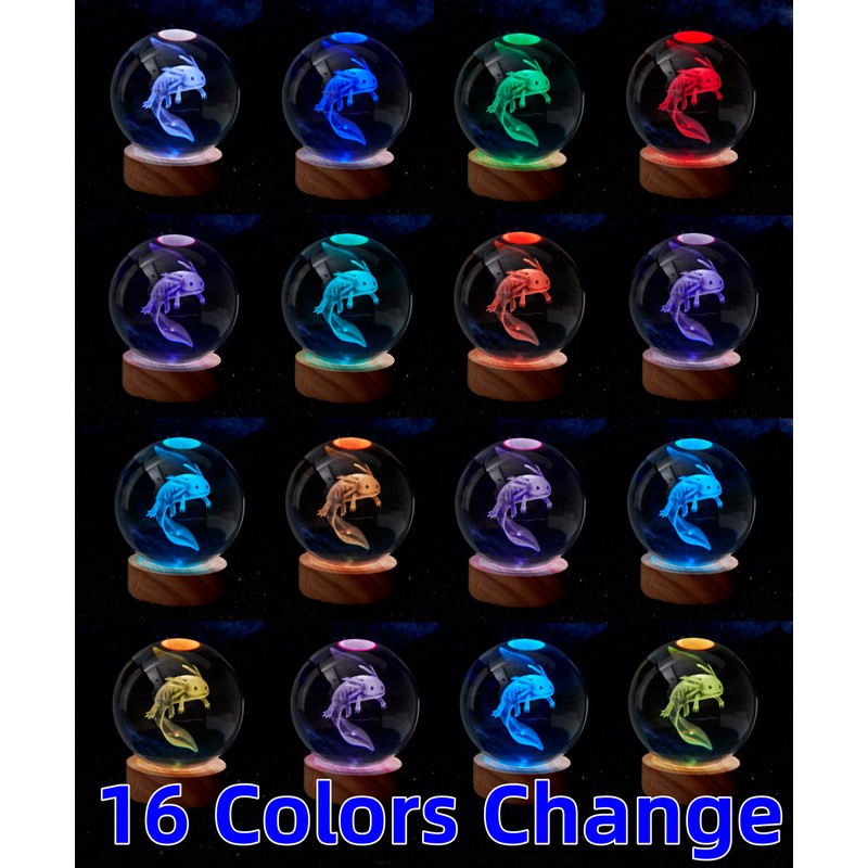 DIGFPWT 3D Axolotl Crystal Ball Lamp, 3.15 inch Crystal Axolotl Night Light with LED Wooden Base, 16 Colors Change with Remote Control, Upgraded Gift Box Packing (Axolotl D)
