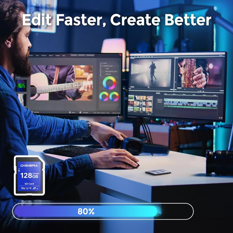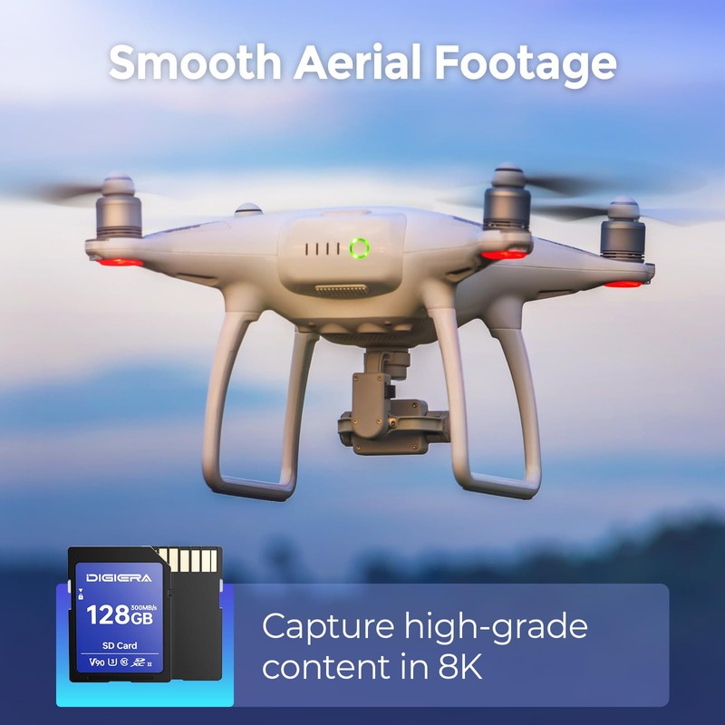 • Professional-Grade Video Recording: Rated C10, V90, and U3, the DIGIERA 128GB SD card delivers unmatched performance for 8K video recording and high-speed continuous shooting. It’s tailored for filmmakers, professional advertisers, and elite content creators who demand precision for complex scenes or multi-camera setups
