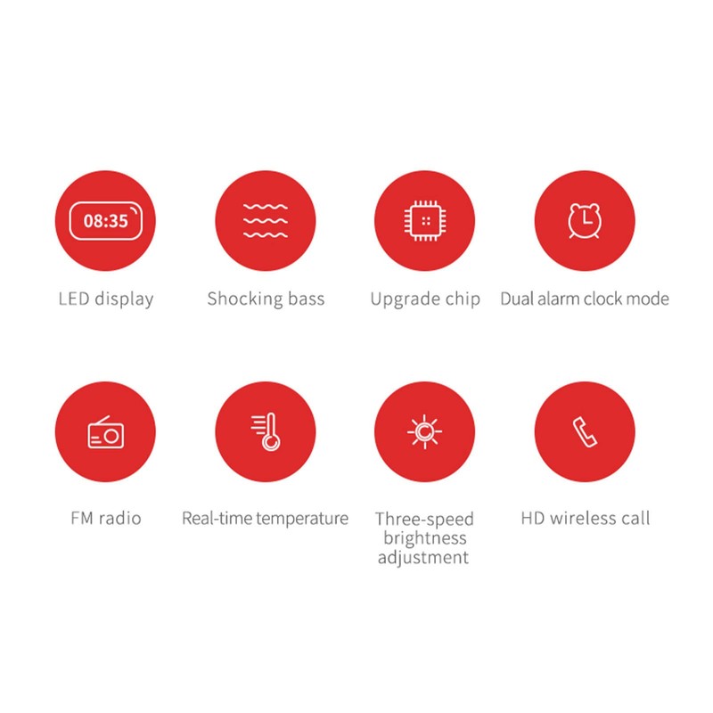 - 6 IN 1: Alarm clock radio combines 6 functions. Bluetooth speaker, FM radio, alarm clock, real time temperature detection, manual control, adjust the brightness.