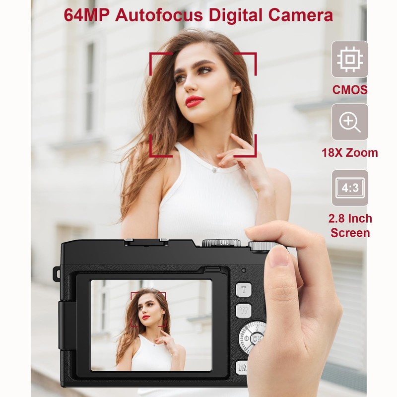 - 📸 【4K digital camera & 64MP Photos】This digital camera captures every detail in ultra-sharp 64MP resolution and records in crisp 4K UHD, thanks to the vlog camera’s advanced CMOS sensor. Whether you're filming fast action or scenic views, this travel camera delivers stunning results for both photography and vlogging.