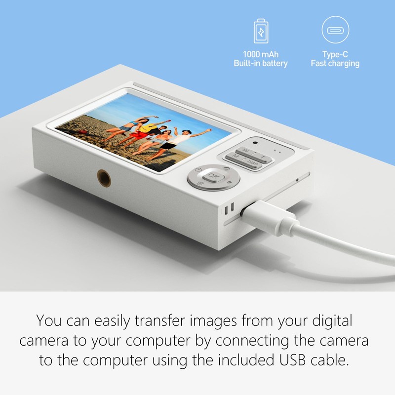 - 【Portable Compact Camera and Easy use】The digital camera is smaller than a regular smartphone so you can carry it in your pocket. Easy to set up and operate, just press the button to capture the moment. Comes with a lanyard for easy portability and mobility. Built-in 1000 mAh lithium battery, so you don't have to worry about running out of power, perfect for holiday trips and camping.