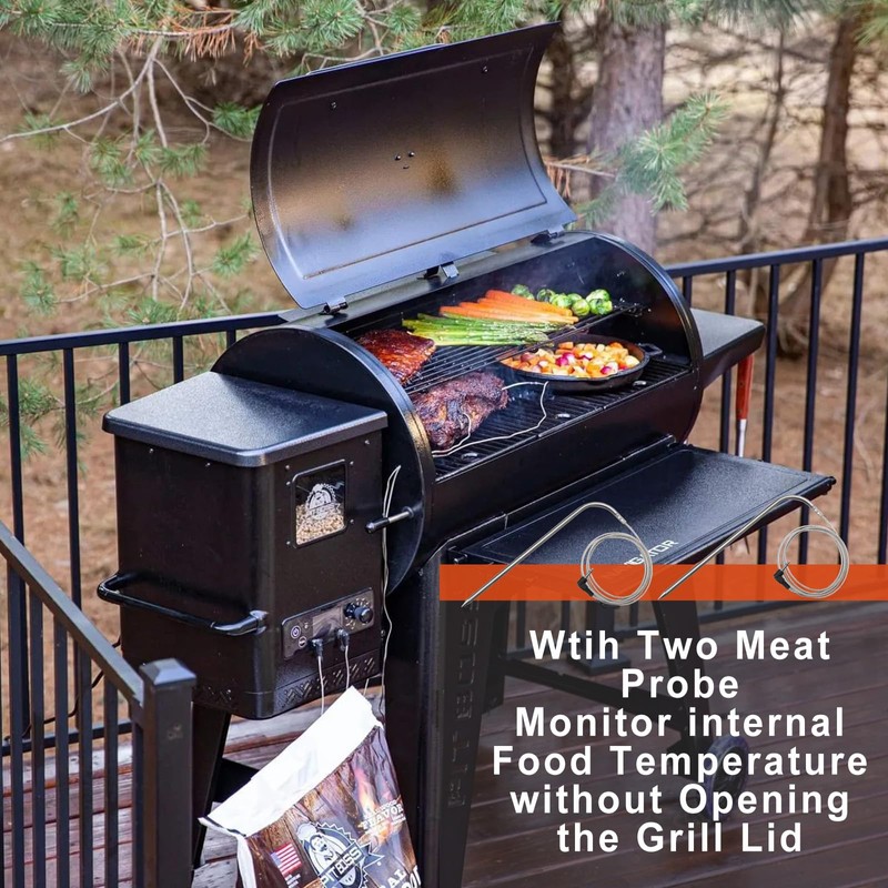 - 【DUAL MEAT PROBE/ RTD PROBE 】The precision technology of the two included meat probes and LED temperature control board track the internal temperature of your food.RTD probe controlling the temperature of your grill .So you never have to worry about overcooking on the grill again.There is a chance that over time, the grill probe will fail and it will need to be replaced