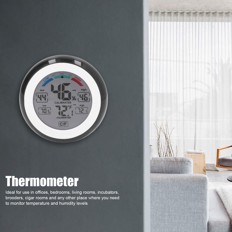 - Easy to carry and read: With its small size, this indoor thermometer hygrometer is easy to carry. And a large LCD screen and a large digital design for easy and clear reading.