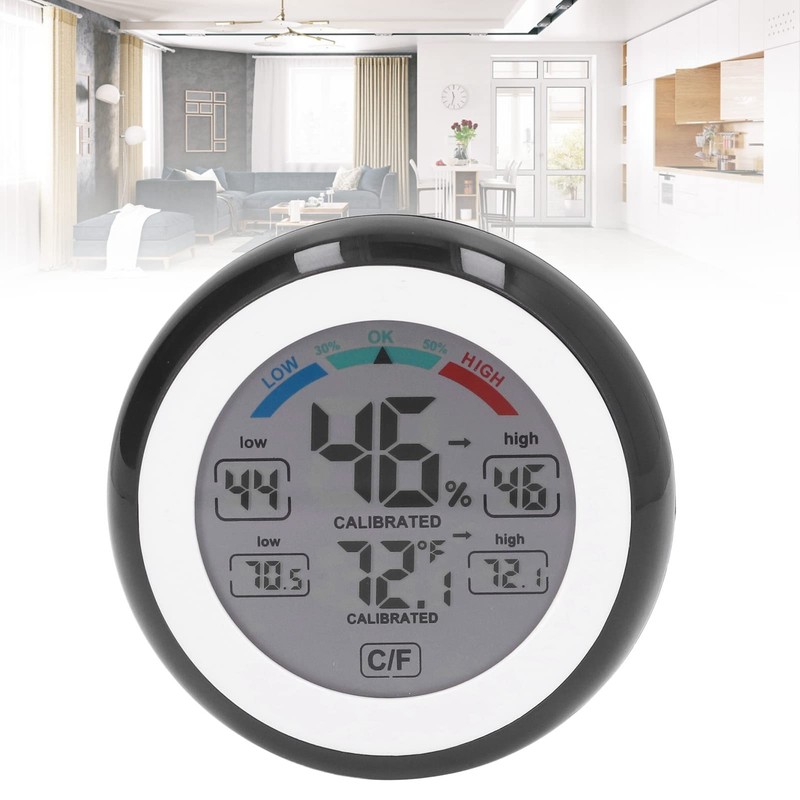 - Touch screen & 2 temperature units: With a touch screen design, our humidity meter has a touch button to change the display of the temperature unit - press the C/F button on the touch screen to change degrees Celsius (°C) or Fahrenheit (°F).