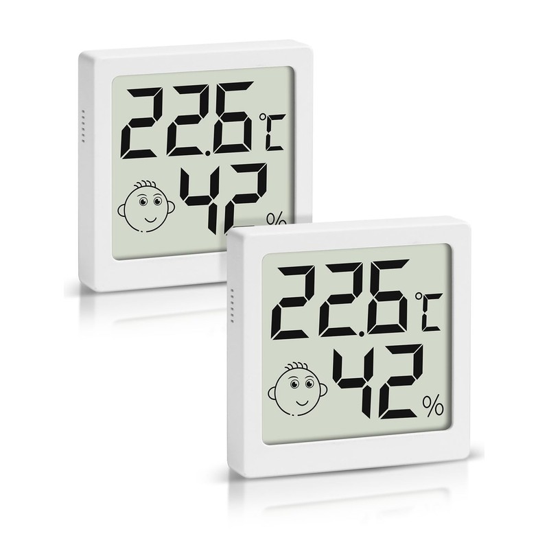 Digital Hygrometer Thermometer Mini, Indoor Room Temperature Monitor and Humidity Meter Temperature Humidity Gauge with Comfort Display for Home Office Car (white-2 packs)