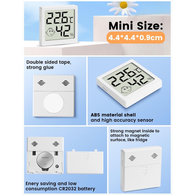 With the happy/unhappy face displayed, it will be easily to find out the changes in your home with just a quick glance at the small hygrometer.