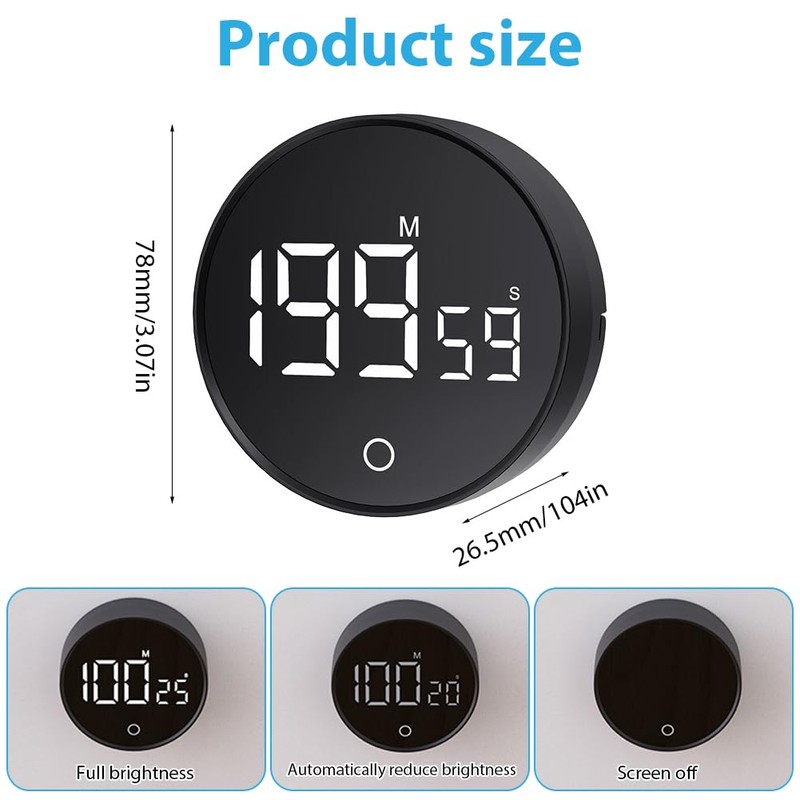 - Easy to use and versatile use: the digital kitchen timer with one-button control and rotating ring for quick time setting (0-99 minutes. 55 seconds). Ideal as a magnetic egg timer, kitchen timer digital or stopwatch digital - perfect for kitchen, fitness, Pomodoro timer methods and time tracking. With 3 levels of volume (0-90dB) and visual timer with LED display, it is also suitable for children, seniors or classrooms.